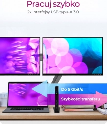 - Wielofunkcyjne interfejsy: 2x USB 3.0, z czego jedno z portem ładowania dla smartfonów lub tabletów.