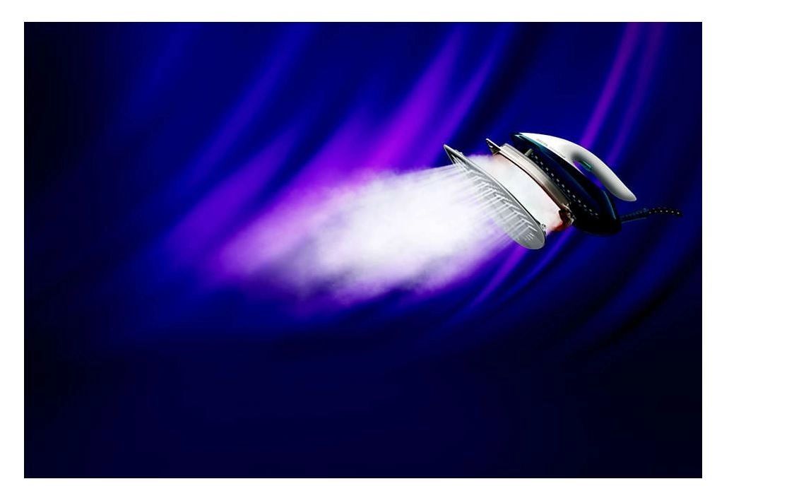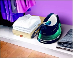 Bez obaw o przypalenie tkanin – żelazko może pozostawać na desce lub ubraniu bez ryzyka uszkodzenia.