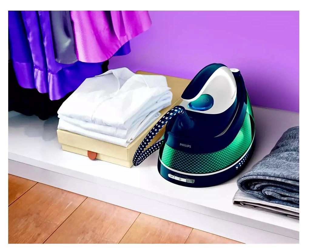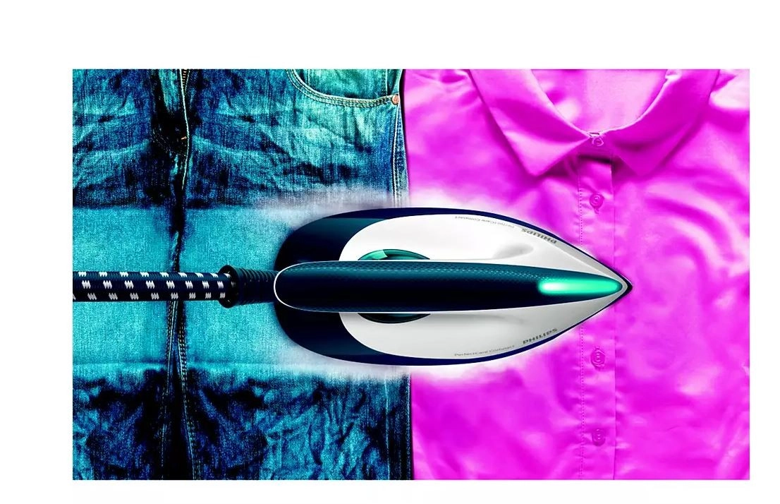 Bezproblemowe prasowanie - Dzięki wydajności pary generator Philips PerfectCare Compact umożliwia efektywne i szybkie prasowanie bez ustawiania temperatury. Dzięki technologii OptimalTEMP nie trzeba sortować prania ani czekać na nagrzanie lub schłodzenie żelazka.