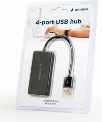 Czarny hub USB z czterema portami umożliwia łatwe podłączanie wielu urządzeń jednocześnie. Dzięki szybkiemu transferowi danych USB 2.0 do 480 Mb/s jest idealny do efektywnej pracy.