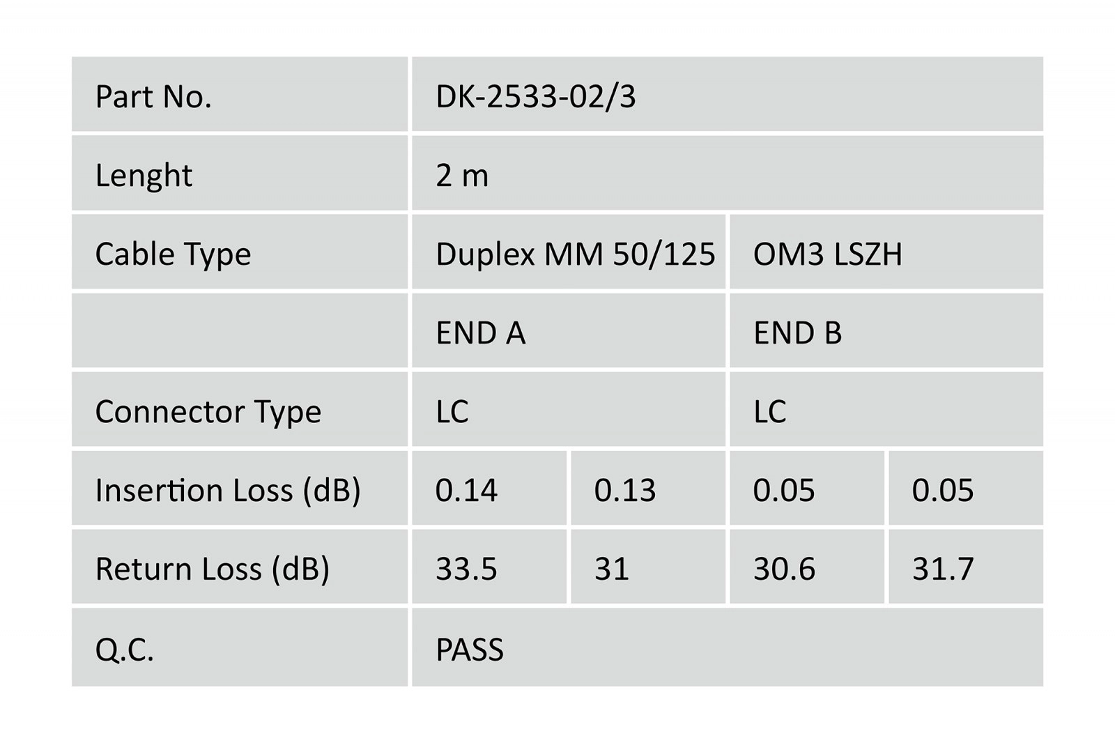 Oba końce wyposażone są w złącza LC z ceramicznymi ferulami dla precyzyjnego wyrównania i minimalnych strat. Idealny do bezpośredniego łączenia elementów aktywnych.