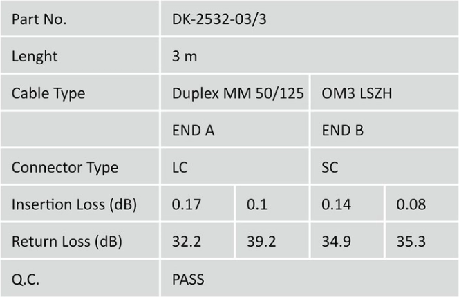 Duplexowy patchcord LC–SC OM3 jest zaprojektowany do wysokich prędkości transmisji danych i stabilnej pracy w sieciach LAN, centrach danych oraz łączach między urządzeniami aktywnymi. Złącza z ceramicznymi ferrulami gwarantują precyzyjne dopasowanie i niskie straty, a płaszcz LSOH zwiększa bezpieczeństwo w pomieszczeniach.