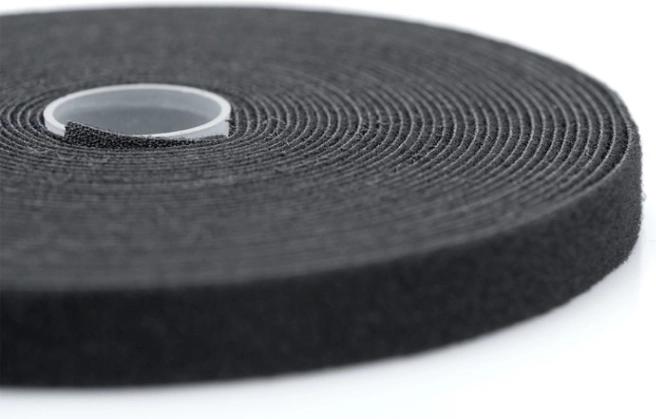 Taśma na rzep 15 mm, 10 m, czarna. Miękka, przycinana, odporna na alkohol, olej, tłuszcz i wodę. Idealna do delikatnego wiązania kabli.