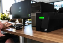 Kompaktowy UPS sprawdzi się na biurku i w salonie, chroniąc Twoje urządzenia podczas awarii i wahań napięcia.
