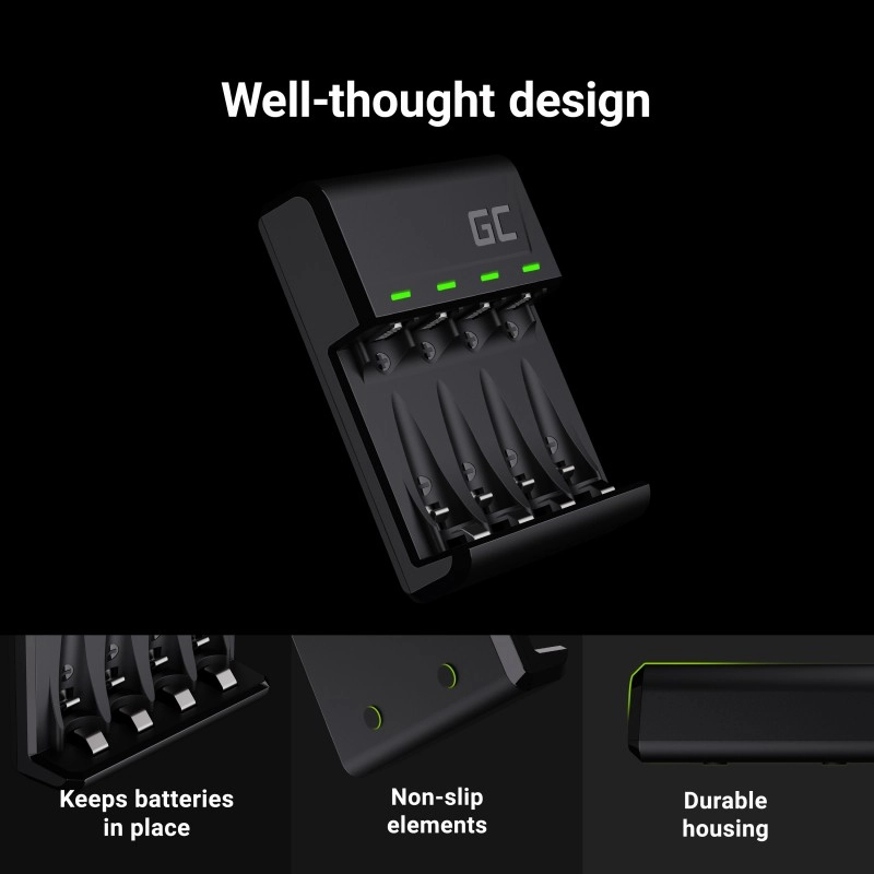 Dzięki czterem niezależnym kanałom można ładować jednocześnie od 1 do 4 ogniw AA lub AAA, każde z własną kontrolą i sygnalizacją przebiegu. Czytelne diody LED informują o stanie ładowania i kondycji każdego akumulatora, aby proces był maksymalnie bezpieczny i efektywny.