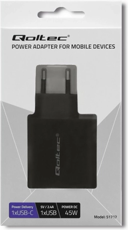 POWER DELIVERY (PD) inteligentnie dopasowuje napięcie i prąd do podłączonego urządzenia, a dzięki nowoczesnemu złączu USB‑C oferuje wysoką wydajność i uniwersalność. Moc 45 W wystarczy dla smartfonów, tabletów i wybranych laptopów, więc jedna ładowarka obsłuży wiele urządzeń.