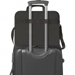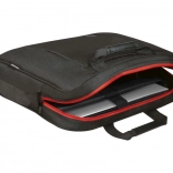 Lekka i wytrzymała torba na laptop DEFENDER Geek 15,6″ chroni Twój komputer w podróży i do pracy. Oferuje wyściełaną przegrodę, organizer na akcesoria, wygodny pasek na ramię oraz pas do założenia na walizkę, a to wszystko w eleganckim czarnym wydaniu z czerwonym zamkiem.