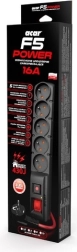 Acar F5 Power to wzmocniona, 16‑amperowa wersja popularnej listwy przeciwprzepięciowej z rodziny acar-AXON. Przy długości niespełna 33 cm oferuje pięć gniazd z bolcem ochronnym oraz skuteczny układ przeciwprzepięciowy, który odprowadza energię pików do uziemienia przewodem PE. Praktyczne uchwyty montażowe znajdują się w zestawie.