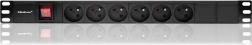 Listwa zasilająca jest idealna do użytku w szafach RACK o rozmiarze 1U 19". Posiada sześć gniazd typu francuskiego, co zapewnia wysoką kompatybilność z różnymi urządzeniami. Obudowa listwy wykonana jest z wysokiej jakości aluminium w kolorze czarnym, natomiast gniazda z odpornego materiału ABS, który chroni je przed uszkodzeniami mechanicznymi i intensywną eksploatacją.