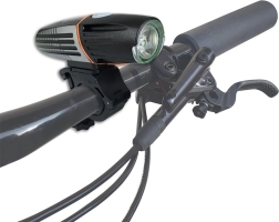 Wydajna dioda LED CREE T6 zapewnia jasne białe światło z zasięgiem około 200 m i widocznością ponad 2 km – idealne na nocne przejażdżki i szybką jazdę.