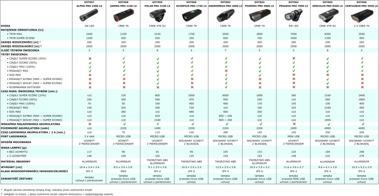 - 7 trybów świecenia, w tym oszczędne i migające dla lepszej widoczności