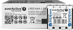 Alkaliczne baterie everActive Pro Alkaline w rozmiarze AAA (LR03) to idealny wybór do urządzeń wymagających niezawodnego i długotrwałego źródła energii. Dzięki pojemności około 1250 mAh zapewniają stałą wydajność i doskonałą trwałość w pilotach, myszkach bezprzewodowych, zabawkach, latarkach i innych urządzeniach.