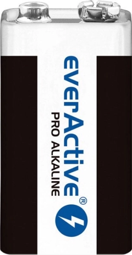 Niezawodna bateria alkaliczna EverActive PRO 9V z pojemnością 650 mAh, idealna do profesjonalnego użytku.