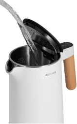 Stylowy design: Czajnik Concept RK3300 Salt-Pepper ozdobi każdy dom. Jego efektowny wygląd podkreśla matowe białe ciało na minimalistycznej podstawie, uzupełnione elegancką drewnianą rączką. Z pojemnością 1,5 l łatwo przygotujesz do 6 filiżanek swojego ulubionego gorącego napoju.