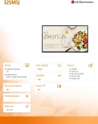 Monitor LG 32" 32SM5J oferuje dzięki nowoczesnemu panelowi IPS doskonałą jakość obrazu i szerokie kąty widzenia. Jest idealny do zastosowań komercyjnych i profesjonalnych wymagających ciągłej pracy. Monitor jest wyposażony w technologię webOS 6.0, która umożliwia łatwe zarządzanie i użytkowanie.