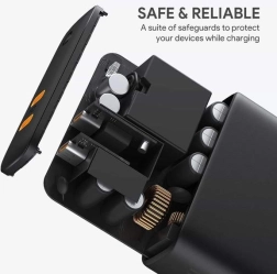 AUKEY PA-D5 to nowoczesna ładowarka sieciowa z technologią GaN, która zapewnia wyższą wydajność w mniejszej obudowie. Przy podłączeniu jednego urządzenia oferuje do 60 W do szybkiego ładowania laptopów, tabletów i telefonów. Przy użyciu obu portów USB‑C inteligentne sterowanie Dynamic Detect rozdziela moc na przykład na 45 W + 18 W dla jednoczesnego ładowania laptopa i smartfona.