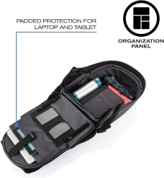 Sprytny miejski plecak z ochroną przed kradzieżą i przemyślaną organizacją. Oferuje ukryte zamki i kieszenie z ochroną RFID, materiał odporny na przecięcie i wodę, wyściełane przegrody na laptop 15,6" i tablet 12,9" oraz zintegrowany port USB do ładowania. Ergonomiczne szelki, elementy odblaskowe i możliwość otwarcia pod kątem 180° czynią z niego idealnego towarzysza podróży i codziennych dojazdów.