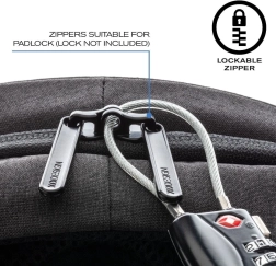 - Maksymalne bezpieczeństwo: ukryte zamki, kieszenie z RFID i konstrukcja otwierana od strony pleców.