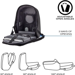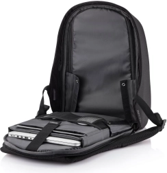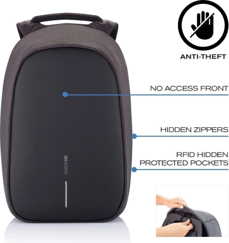 Podróżuj i dojeżdżaj bezpiecznie z plecakiem XD DESIGN Bobby Hero XL w eleganckiej czerni. Oferuje antykradzieżową konstrukcję otwieraną od strony pleców, ukryte zamki i kieszenie RFID, materiał odporny na przecięcie i wodę, ergonomiczne szelki oraz bogatą organizację wnętrza z miejscem na laptop 17″ i tablet 12,9″. Zintegrowany port USB, elementy odblaskowe i materiał z recyklingowanego RPET czynią go idealnym wyborem do miasta i w podróże.