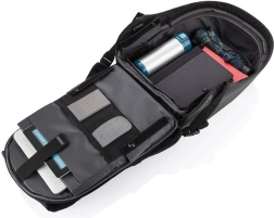 Plecak posiada kilka przegród umożliwiających przejrzyste uporządkowanie Twoich rzeczy. W tym podwójną kieszeń na tablet i laptop.