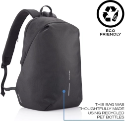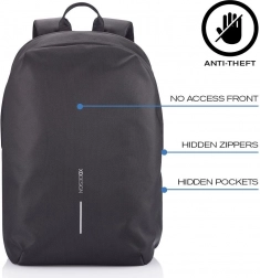 Plecak Bobby Soft w czarnym kolorze oferuje najwyższą ochronę dzięki swojej antykradzieżowej konstrukcji dostępnej tylko od strony pleców. Ukryte zamki błyskawiczne i kieszenie chronione RFID zapewniają dodatkowe bezpieczeństwo twoich osobistych rzeczy.