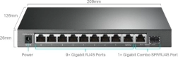 - 9× Gigabit RJ45, 1× Gigabit combo SFP/RJ45