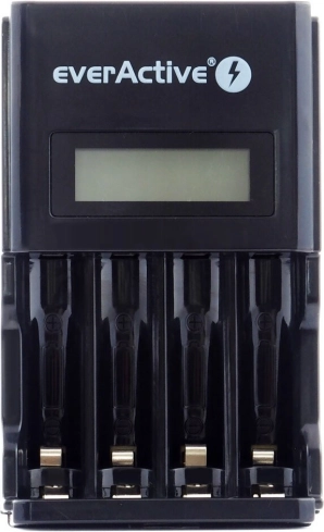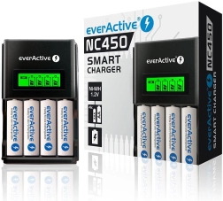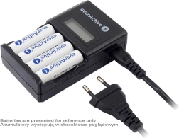 Czarna ładowarka everActive NC-450 jest wykonana z wysokiej jakości tworzywa ABS, które gwarantuje wysoką odporność i estetyczny wygląd. Wyposażono ją w 4 niezależne kanały ładowania, co pozwala ładować różne pojemności i rozmiary akumulatorów Ni-MH (AAA/R03 oraz AA/R6).