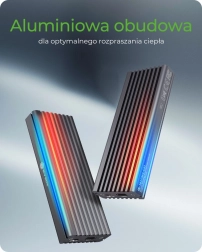 Masivne aluminiowe chassis z żebrowaniem, wewnętrzny radiator oraz termopad skutecznie odprowadzają ciepło z M.2 SSD i minimalizują throttling podczas długich transferów.