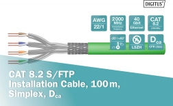 Kabel instalacyjny DIGITUS CAT 8.2 został zaprojektowany dla bardzo szybkich i stabilnych sieci nowej generacji. Dzięki konstrukcji 4×2× AWG 22/1 (pojedynczy drut) zapewnia znakomitą jakość sygnału i częstotliwości transmisji do 2000 MHz. Podwójne ekranowanie S/FTP (oplot + folia na parach) skutecznie tłumi zakłócenia i gwarantuje niezawodność nawet w wymagającym środowisku.