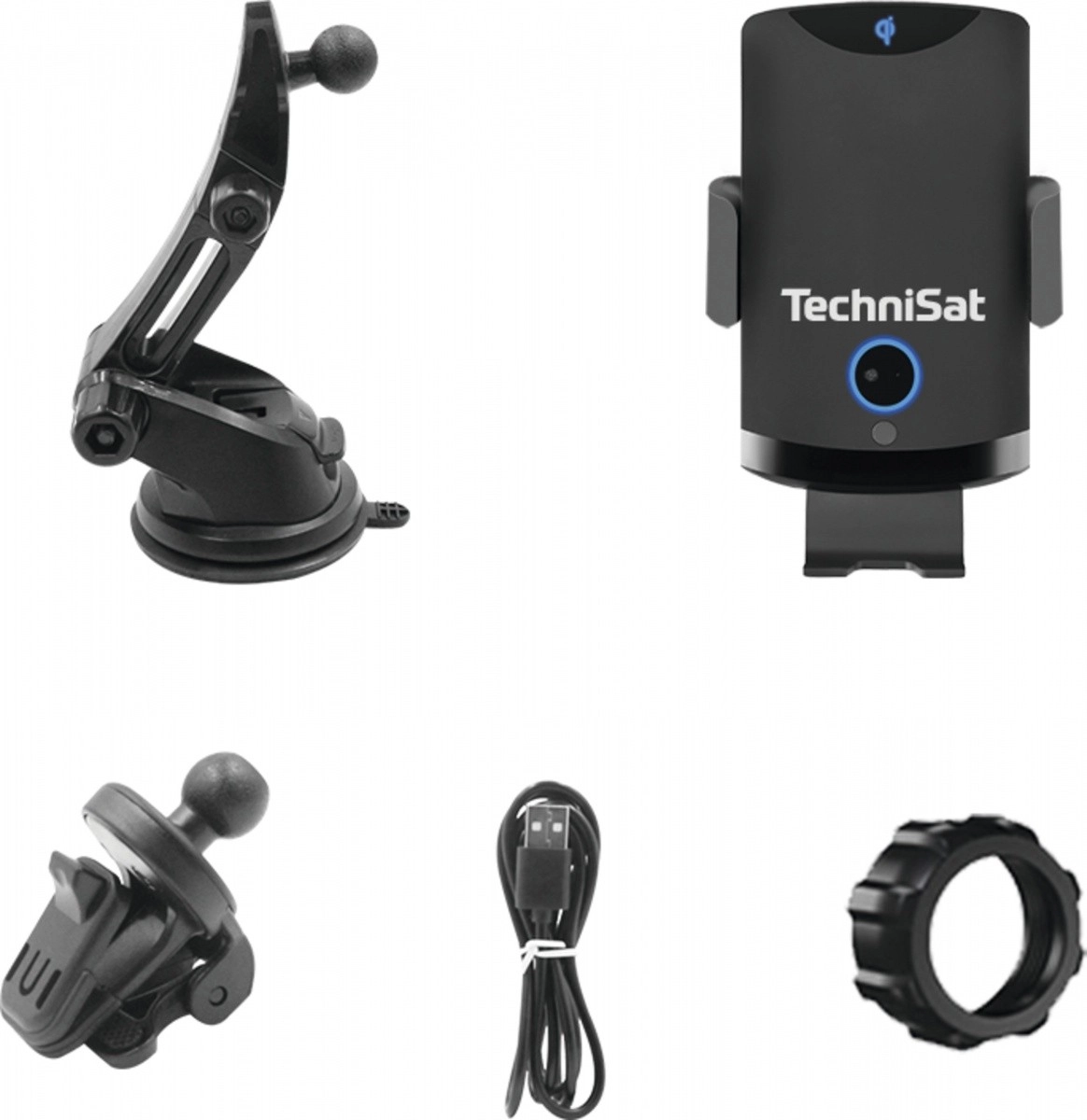 - Uchwyt z ładowaniem bezprzewodowym, uchwyt z przyssawką, klips do kratki nawiewu, kabel USB‑C, pierścień montażowy