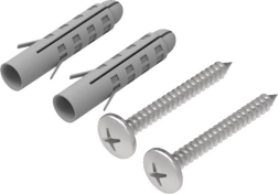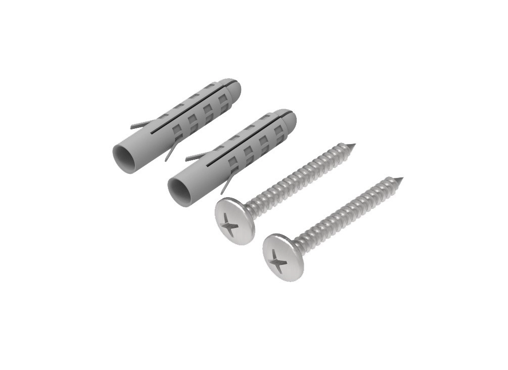 W zestawie znajdują się kołki i śruby do bezpiecznego mocowania urządzenia na ścianie lub w szafie, wszystko dla czystej i stabilnej instalacji.