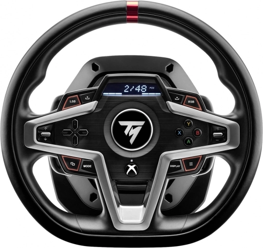 Thrustmaster T248 to wybór dla graczy, którzy oczekują wydajności, immersji i kontroli. Dzięki wbudowanemu wyświetlaczowi śledzisz telemetrię (obroty, bieg, najlepsze okrążenie) i bezpośrednio na kierownicy dostrajasz kluczowe ustawienia – od typu force feedback po kąt obrotu.