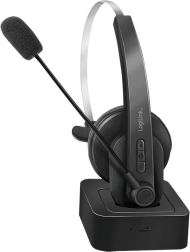 Lekki i wygodny zestaw słuchawkowy Bluetooth z mikrofonem do czystych rozmów w biurze i w domu. Oferuje Bluetooth 5.0, czas rozmów do 18 godzin, zasięg do 10 m, zintegrowaną regulację głośności oraz pełną kompatybilność z Windows, macOS, iOS i Android.
