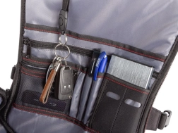 Wzmocniona kieszeń ochronna bezpiecznie przechowa delikatne akcesoria, takie jak okulary przeciwsłoneczne. Cztery kieszenie boczne są idealne na butelki i rzeczy pod ręką, a boczna kieszeń na telefon ma przelot na kable do środka i na zewnątrz.