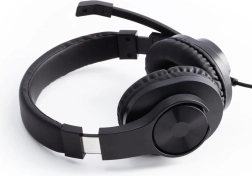 - Biurkowy zestaw słuchawkowy do PC z elastycznym ramieniem mikrofonu i złączem 1 x 3,5 mm jack oraz adapterem Y