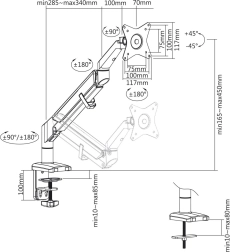 Ergonomiczny uchwyt do monitora oferuje doskonałe rozwiązanie zarówno do biura, jak i do domu. Zapewnia łatwy montaż dzięki standardom VESA: 75x75, 100x100 mm. Dzięki sprężynie gazowej i regulowanym przegubom umożliwia pochylanie, obrót i regulację wysokości, co zwiększa komfort i widoczność podczas pracy. Zalety uchwytu: