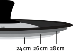 Uniwersalna pokrywka to praktyczne rozwiązanie, gdy brakuje Ci pokrywki do konkretnego naczynia. Jedna pokrywka może zastąpić aż trzy różne pokrywki o średnicy 24, 26 lub 28 cm. Dzięki przezroczystej konstrukcji możesz łatwo kontrolować przygotowanie potraw.
