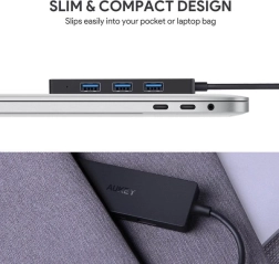 Z Aukey Hub USB-C o ultracienkiej konstrukcji zyskasz doskonałe połączenie urządzeń z nowoczesnym komputerem. Ten hub oferuje szybki transfer danych, obsługę USB On-The-Go i jest kompatybilny z wieloma urządzeniami, w tym PC, MacBook Air, iPad Pro i innymi.