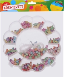 Ten kreatywny zestaw jest idealny dla dzieci i dorosłych, którzy kochają rękodzieło. Dzięki szerokiej gamie kształtów i kolorów łatwo wykonasz bransoletki, naszyjniki czy drobne dekoracje. Opakowanie w kształcie kwiatu jest praktyczne do przejrzystego przechowywania.