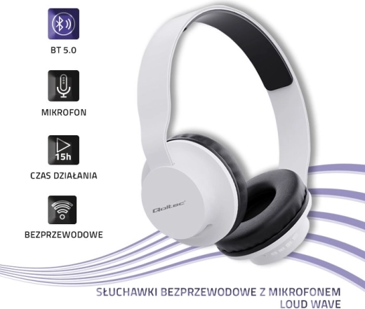Bezprzewodowe słuchawki z mikrofonem BT 5.0 – Białe