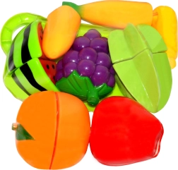 Ten zestaw do krojenia owoców zapewnia dzieciom realistyczne doświadczenie przygotowywania posiłków, i to całkowicie bezpiecznie. Poszczególne kawałki owoców są wyposażone w rzep, dzięki czemu można je łatwo „przeciąć” dołączonym plastikowym nożem i ponownie połączyć. Dzieci w zabawny sposób trenują motorykę małą, koordynację ręka–oko oraz rozwijają wyobraźnię podczas zabawy w kucharza.
