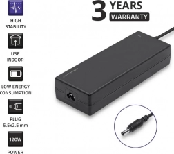 Niezawodny biurkowy zasilacz do szerokiej gamy urządzeń zapewnia stabilne wyjście 12 V / 10 A oraz wtyk 5,5 × 2,5 mm. Dzięki nowoczesnym zabezpieczeniom gwarantuje bezpieczne zasilanie, wysoką wydajność i niskie zużycie energii. W zestawie znajduje się kabel zasilający.
