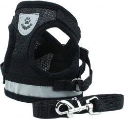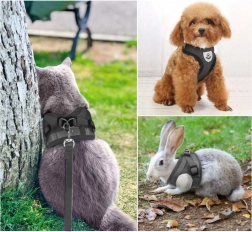Dzięki szerokim możliwościom regulacji łatwo dopasujesz uprząż do różnych sylwetek mniejszych psów, kotów i królików. Miękkie wypełnienie zapobiega otarciom i pozwala skórze oddychać, a solidne klamry i metalowe oczko do przypięcia smyczy dbają o niezawodne prowadzenie.