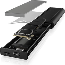 Dzięki dołączonemu kablowi USB‑C i adapterowi USB‑A podłączysz obudowę do szerokiej gamy urządzeń — od nowoczesnych laptopów po komputery stacjonarne. Obsługa popularnych długości M.2 (2230/2242/2260/2280) gwarantuje kompatybilność z większością dysków NVMe SSD.