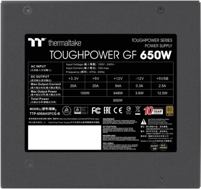 Thermaltake Toughpower GF1 650W to wysokiej jakości zasilacz PC zaprojektowany z myślą o nowoczesnych konfiguracjach, z naciskiem na efektywność, stabilność i ciszę. Certyfikat 80 PLUS Gold gwarantuje wysoką sprawność i niższe nagrzewanie, dzięki czemu Twój komputer będzie działał niezawodnie i oszczędnie.