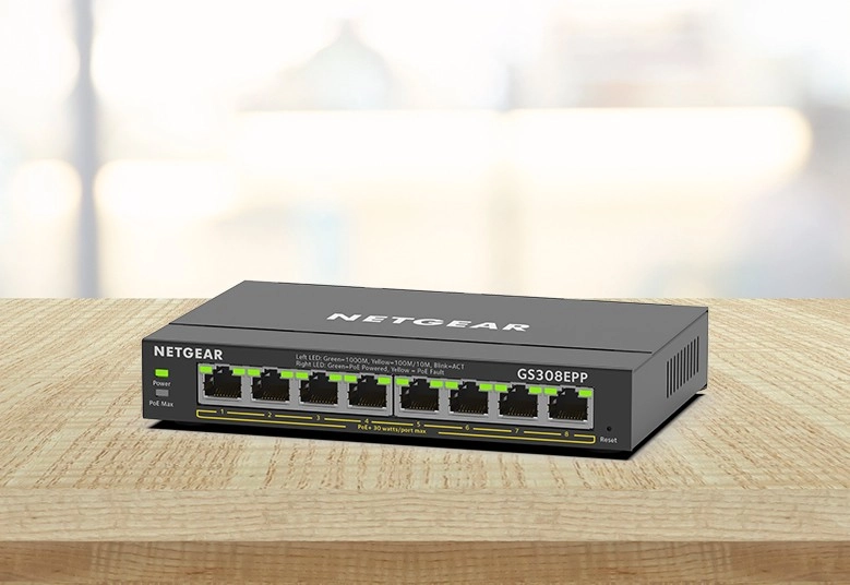 Kompaktowy i cichy przełącznik dla małych i średnich firm z 8× Gigabit Ethernet, mocą PoE+ 123 W oraz podstawowym zarządzaniem. Umożliwia zasilanie i podłączanie kamer IP, telefonów VoIP oraz punktów dostępowych Wi‑Fi jednym kablem, oferuje niesblokowane przełączanie, zaawansowane zarządzanie PoE oraz montaż na biurku, ścianie i w szafie rack.
