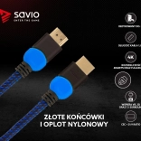 Kabel HDMI 2.0 w niebiesko‑czarnej wersji jest idealnym wyborem dla miłośników wysokiej jakości obrazu i dźwięku. Został zaprojektowany do użytku z nowoczesnymi urządzeniami, w tym z PlayStation, a jego możliwości transmisji wspierają także treści 4K.