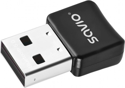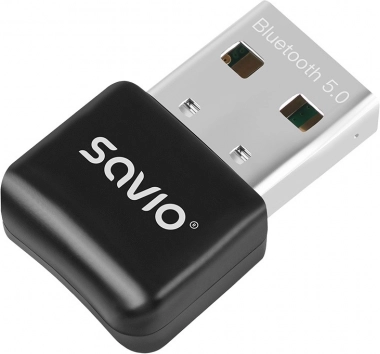 Savio adapter USB Bluetooth 5.0: szybkie i stabilne połączenie, zasięg 10 m, prędkość 3 Mb/s, wskaźnik LED, Class 2, wsteczna kompatybilność, Windows 7–11.