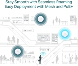 W ekosystemie Omada SDN znajdziesz centralne zarządzanie w chmurze przez stronę WWW lub aplikację, automatyczny dobór kanałów i kontrolę mocy, Omada Mesh do bezprzewodowego łączenia AP oraz szybki roaming dla nieprzerwanych połączeń głosowych i streamingu. PoE+ (802.3at) ułatwia instalację tam, gdzie brak gniazdka zasilania.