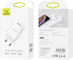 USAMS T18 to niezawodna i wytrzymała ładowarka sieciowa z jednym portem USB, idealna do szybkiego i bezpiecznego ładowania urządzeń.